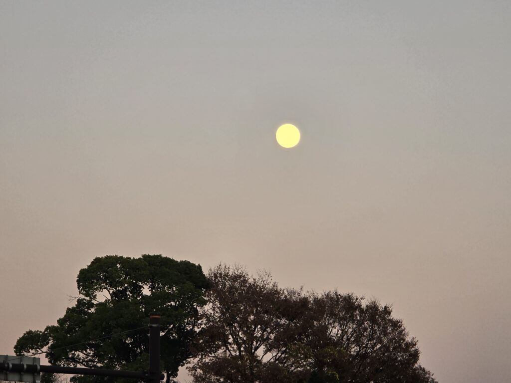 昨日、急なご案内が入り物件へ向かう途中に空に浮かんでいたお月様(コールドムーン)を眺めてました。