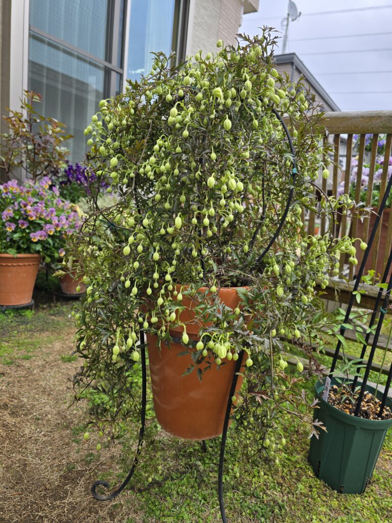 今年もクレマチス カートマニージョーや龍神櫻が咲き始めました。クレマチスはこれからですが例年通り沢山の実をつけてます。これからが楽しみです。🌸